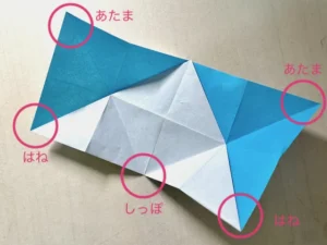 尻尾を折る。ここがとにかく分厚い! 破れないように丁寧に折る。