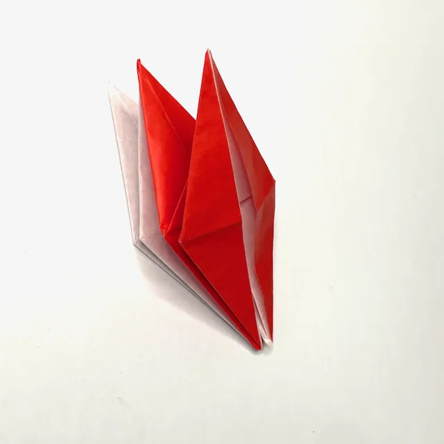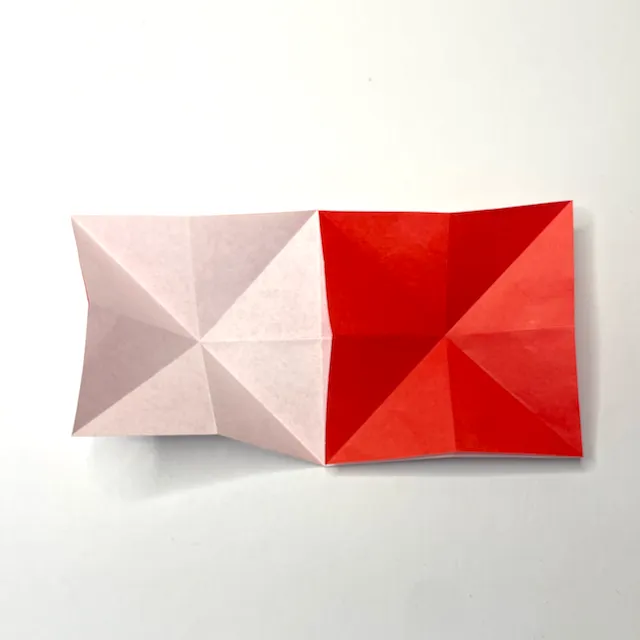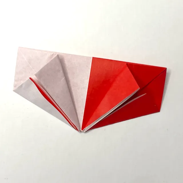 あとはさっきの紅白妹背山と同様に折っていくと、前後2色になる。かわいい。